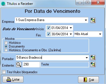 | Tira Títulos Bloqueados | permite tirar do relatório Títulos bloqueados. |