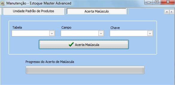 Tabela Permite selecionar a tabela que deseja acertar a fonte para letra Maiúscula.