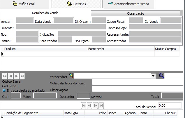 | Montador | Permite visualizar o montador referênte a venda |