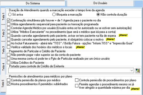 | Permite agendar o procedimento mesmo se já tiver atingido a quantidade máxima por dia | Permite que mesmo que tenha a configuração para o médico dos procedimentos que ele pode atender, com a quantidade máxima do procedimento do dia, o usuário onsiga agendar, após responder sim na mensagem que será dada. |
