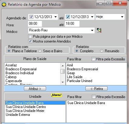| Agendado de e até | permite determinar o período do agendamento por médico que será visualizado no relatório. |