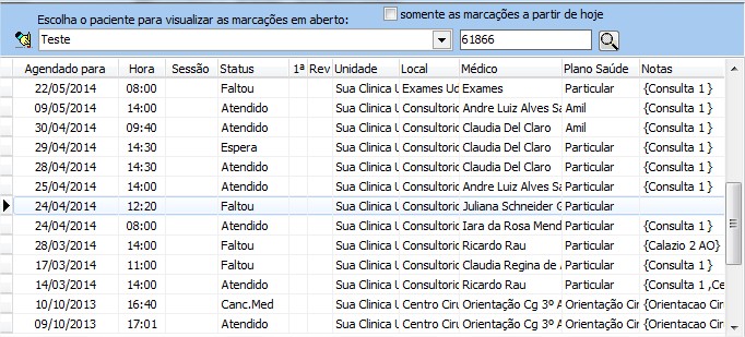 Desmarcando somente as marcações a partir de hoje, possibilita visualizar todos os agendamentos.
