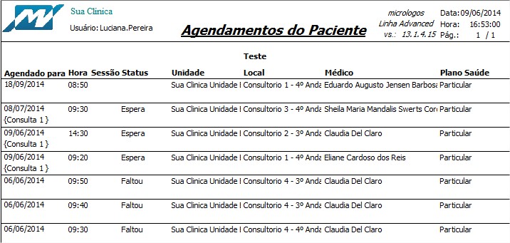 Listar, possibilita relatório com o histórico de todos os agendamentos.