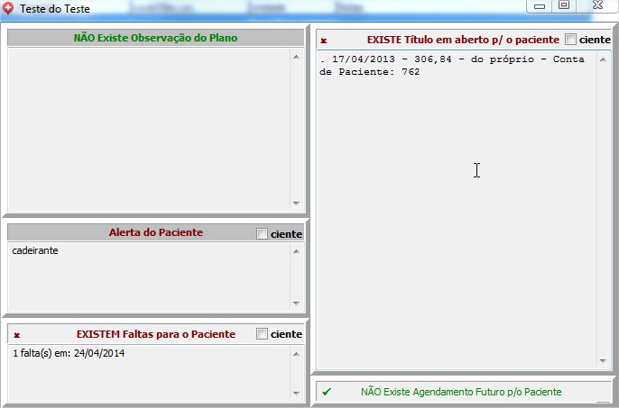 Existe título em aberto p/ o paciente Se configurado Agenda - Do Sistemasera visualizado caso o paciente tenha títulos em aberto no Cash.