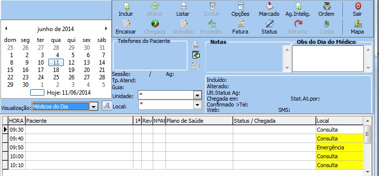 - Permite incluir paciente na agenda, alterar o cadastro do paciente, visualizar os horário médico.