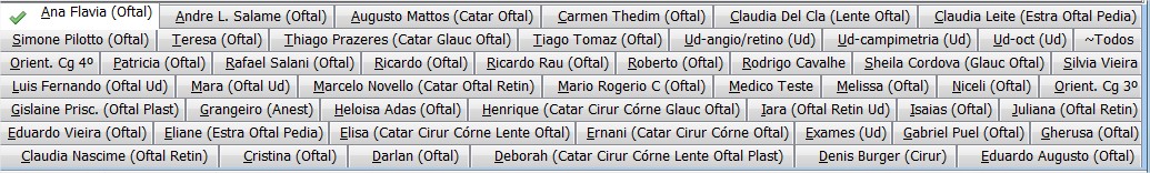| Para acessar a agenda de um médico ou de um local de atendimento | basta clicar nas abas da parte inferior da tela, que mostrarão os nomes abreviados dos médicos ou dos locais, dependendo da forma de visualização. |