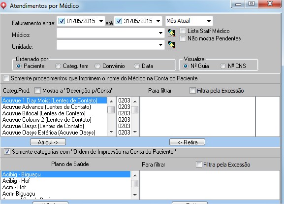 Faturamento entre/até determina o período do faturamento de atendimentos médicos que será visualizado no relatório.