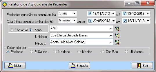 Pacientes que não se consultam há/até determina o período que será visualizado no relatório.