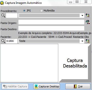 Com o atendimento do paciente aberto, pressionar ctrl+alt+i, isso fará com que a captura de imagem abra.