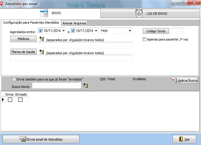 | Agendados entre | Permite informar o perido de pacientes agendados para envio dos Emails. |