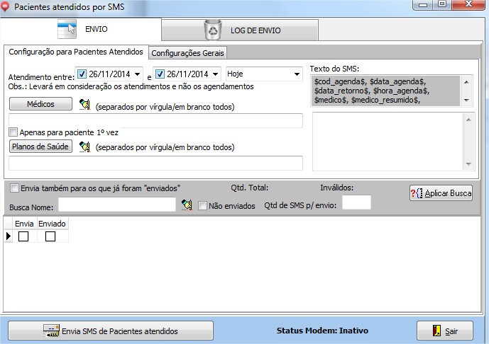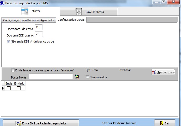 Envia SMS de pacientes Agendados Permite o envio após selecionado.