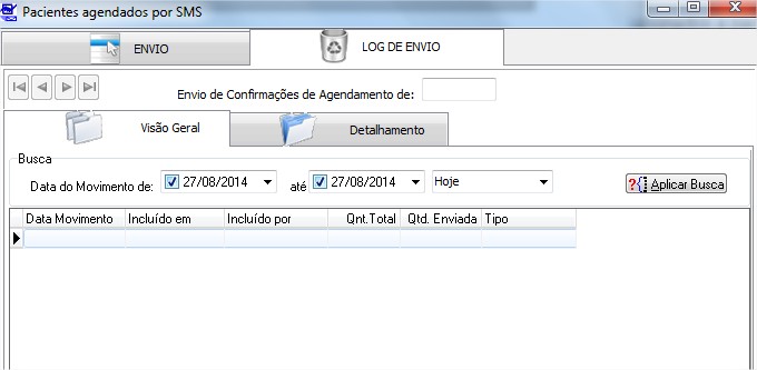 Atendimento entre Permite informar o periodo de atendimento que deseja enviar sms.