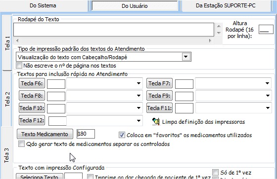 Texto com impressão configurada permite configurar a impressão do texto para imprimir e dar chegada de paciente de 1ª vez, só de 1 ª vez e direto para impressora.