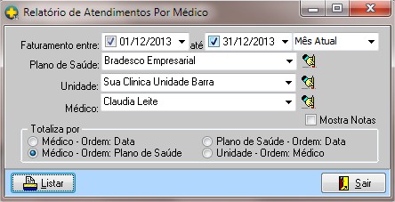 Mostra Notas marcando esta opção será possível visualizar os procedimentos realizados pelo médico.