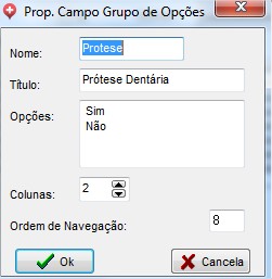 | Título | Permite definir o nome que deseja visualizar na ficha para o Grupo de opções. |