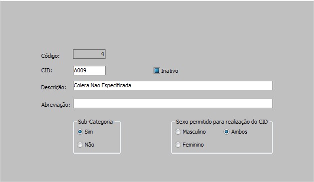 | Inativo | inativa o CID no sistema. |
