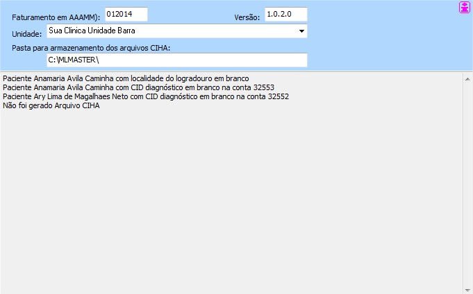 Pasta para armazenamento dos arquivos CIHA ppasta onde o arquivo gerado será salvo.