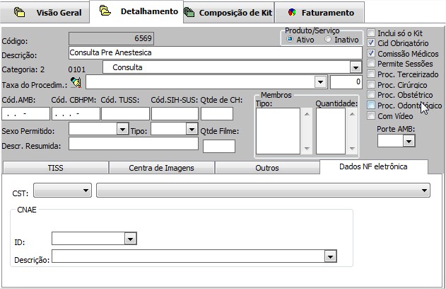 Permite informar os membros e quantidade relacionados ao procedimento.
