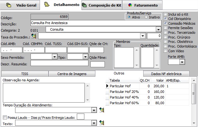 Essa quantidade será multiplicada pelo valor do CH cadastrado para cada plano de saúde, o que resultará no valor cobrado pelo procedimento por cada um deles.