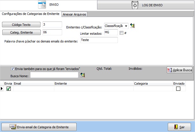 | Envia email de Categoria de Emitente | Permite enviar os emails. |