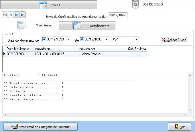 | Data do Movimento | Permite filtrar a data que deseja visualizar o log do envio dos emails. |
