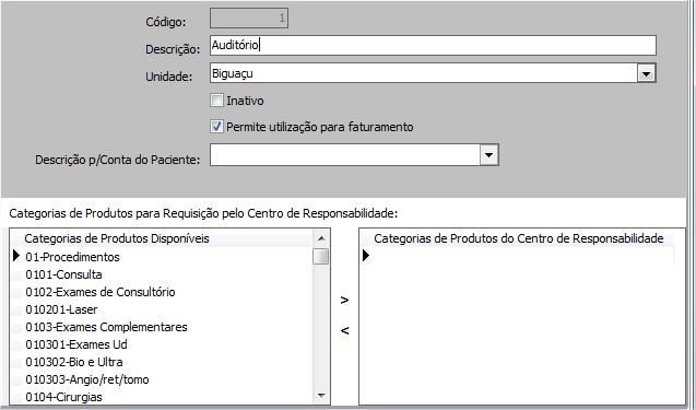 Permite utilização para faturamento possibilita faturamento para o Centro de responsabilidade.