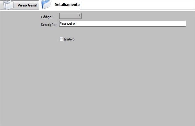 | Inativo | Permite inativar o centro de Custos. |