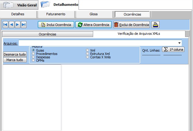 | Qnt.Linhas | Se estiver visualizando as guias ou procedimentos de dentro do XML, será mostrado a quantidade de linhas que existem no XML |