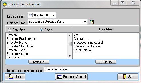 Convênio/Plano permite selecionar um convênio ou um plano de saúde.