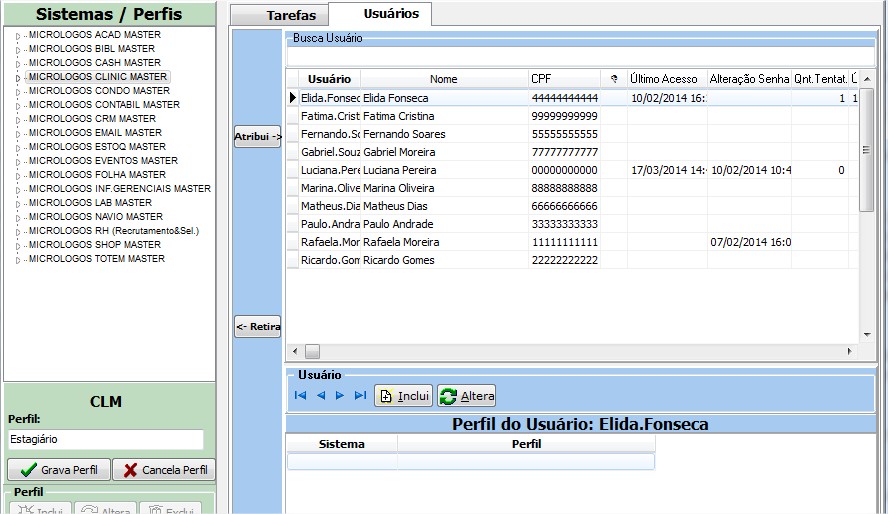 Será habilitado um campo para escrever um nome de perfil, por exemplo Estagiário. Feito isso clique no botão,Grava Perfil.