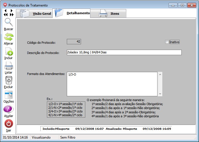 Protocolos de Tratamento Colocar as descrições das sessões completas, para elas aparecerem no agendamento simultâneo.
