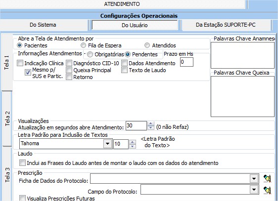 Atendimento - Usuário Tela1. - grupo prescrição (as 3 configurações)