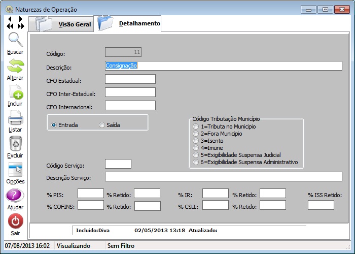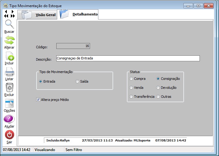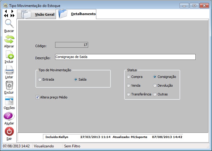 Criar os tipos de movimentação Consignação de entrada e Consignação de saída na Tabela Tipos de Movimento.