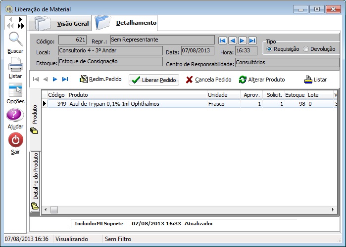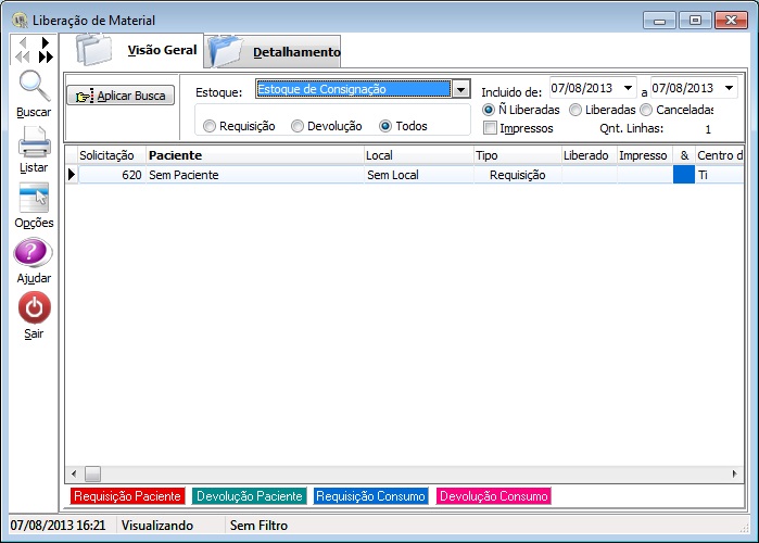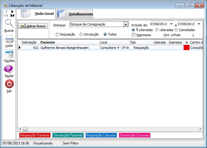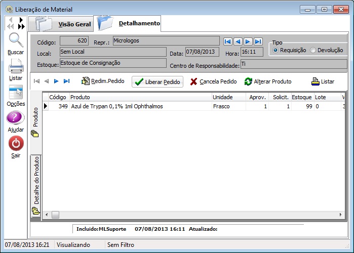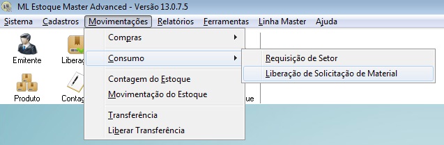Responsável acessa o módulo de liberação de solicitação de material, filtra a requisição e a libera.