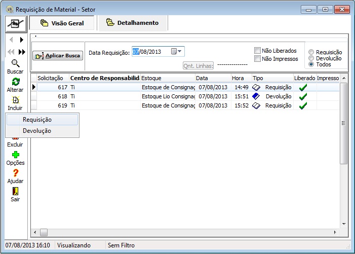 Acessar módulo de requisição/devolução ambulatório (Somente pelo Clinic).