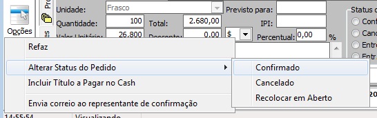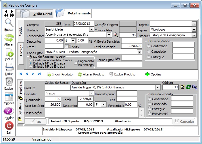 Gerar um pedido de compra ao fornecedor com a quantidade necessária para consignação. Caso já possua a nota fiscal com o(s) item(ns) consignado(s), ignorar essa etapa.