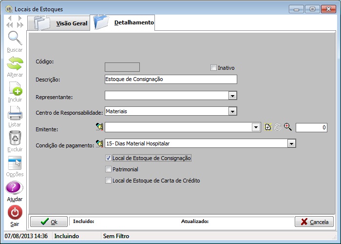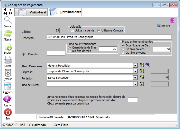 Determinada empresa fornece à clínica/hospital uma quantidade produtos. Por exemplo.: 100 filtros ou 100 oclusores ou 100 lentes,...A realização desse pagamento só será feita na(s) data(s) estipulada(s) pelo fornecedor e somente daquilo que foi vendido. O que não for vendido é devolvido ou permanece em estoque para venda.