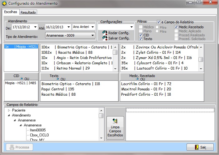 | Atendimento de/até | determinar o período a ser listado no relatório. |