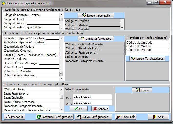 | Limpa Totalizadores | permite limpar o campo Totaliza por. |