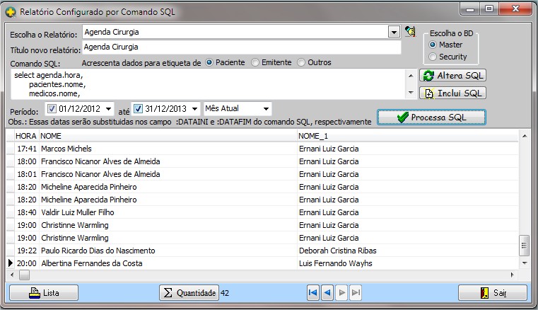 Escolha o BD permite selecionar o BD entre Master ou Security.