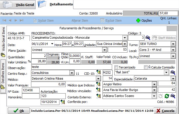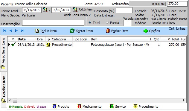 | Conta | permite visualizar numero da conta do Paciente. |
