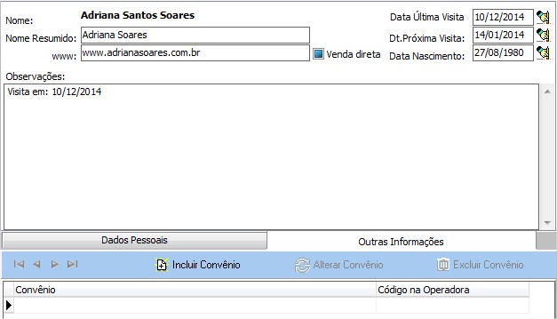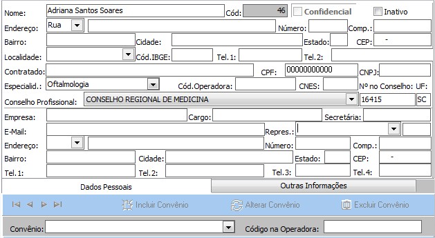 tabela com os códigos da operadora em cada convênio que o contato externo será utilizado.