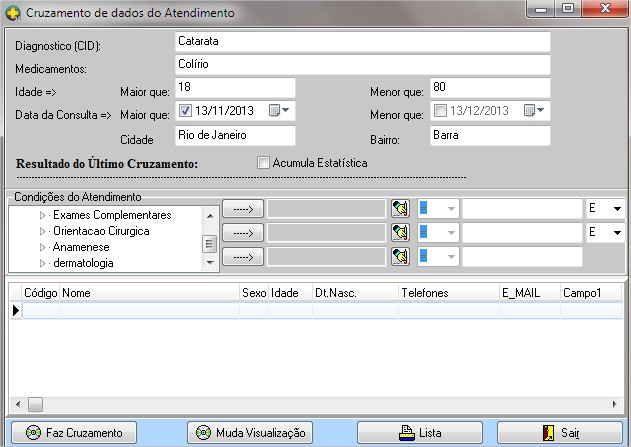 Condições do Atendimento permite selecionar informações contidas em campos de fichas de atendimentos.