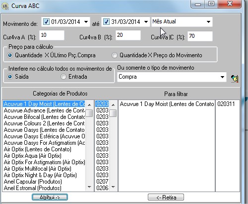 | Movimento de / Até | Permite informar o período da movimentação que deseja visualizar a curva ABC. |