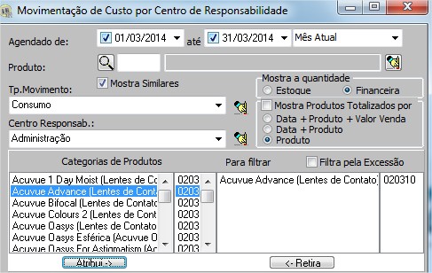 | Filtra pela exceção | Permite filtrar a categoria que não deseja visualizar. |
