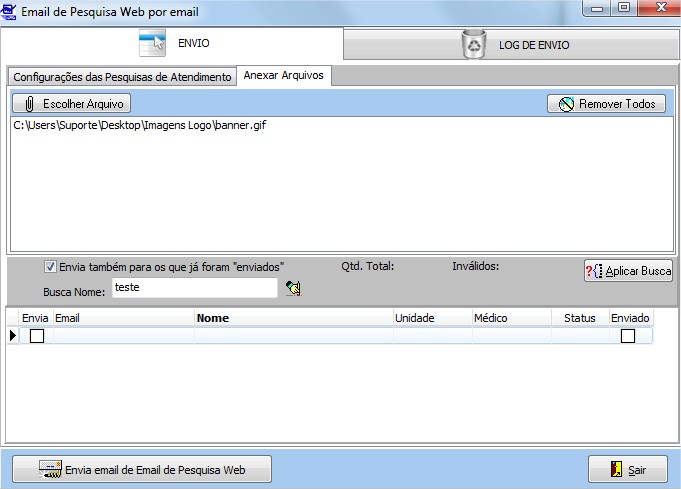 - Anexar Arquivo para envio junto ao email da pesquisa de atendimento.