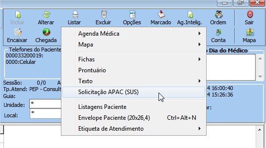Clicar em 'Solicitação APAC (SUS)';