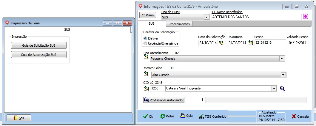 Imprimir guia de Autorização SUS.