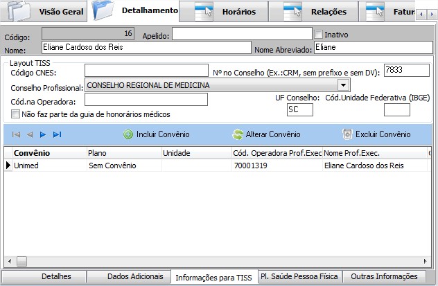| Conselho Profissional | O sistema já libera as opção que você pode escolher, por exemplo Conselho Regional de Medicina. |