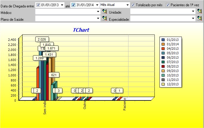 | Data da chegada entre | permite filtrar em determidado periodo a Estatística Mensal de Indicaçãodo atendimento |